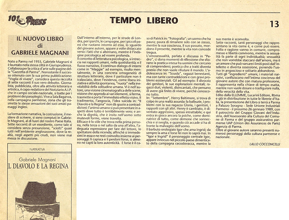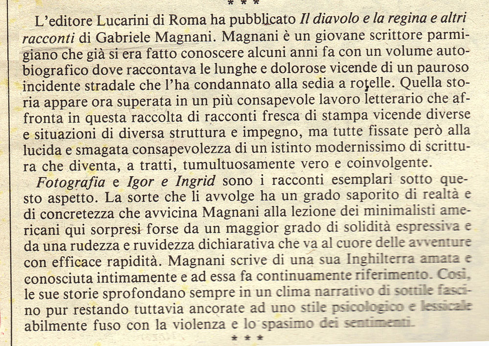 Review - Il Diavolo e la Regina - Gazzetta di Parma -December 1989.